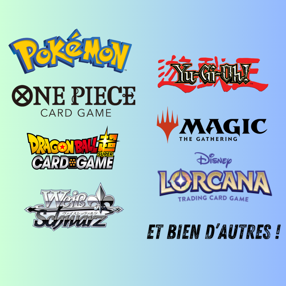 Fans depuis l'enfance, nous avons une passions pour de multiples jeux de cartes à jouer et à collectionne. Des classiques Pokémon ou Magic The Gathering en passant par Yu-Gi-Oh! jusqu'à des TCG comme World of Warcraft, Duel Master, Weiss Schwarz, Vs System. Nous mettons en avant nos TCG de cœur dans la box.